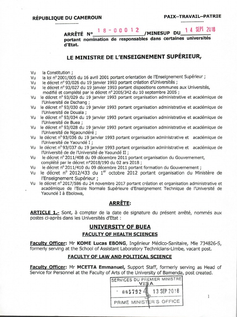 Nomination Univ Etat Sept 2018 Université Enseignants