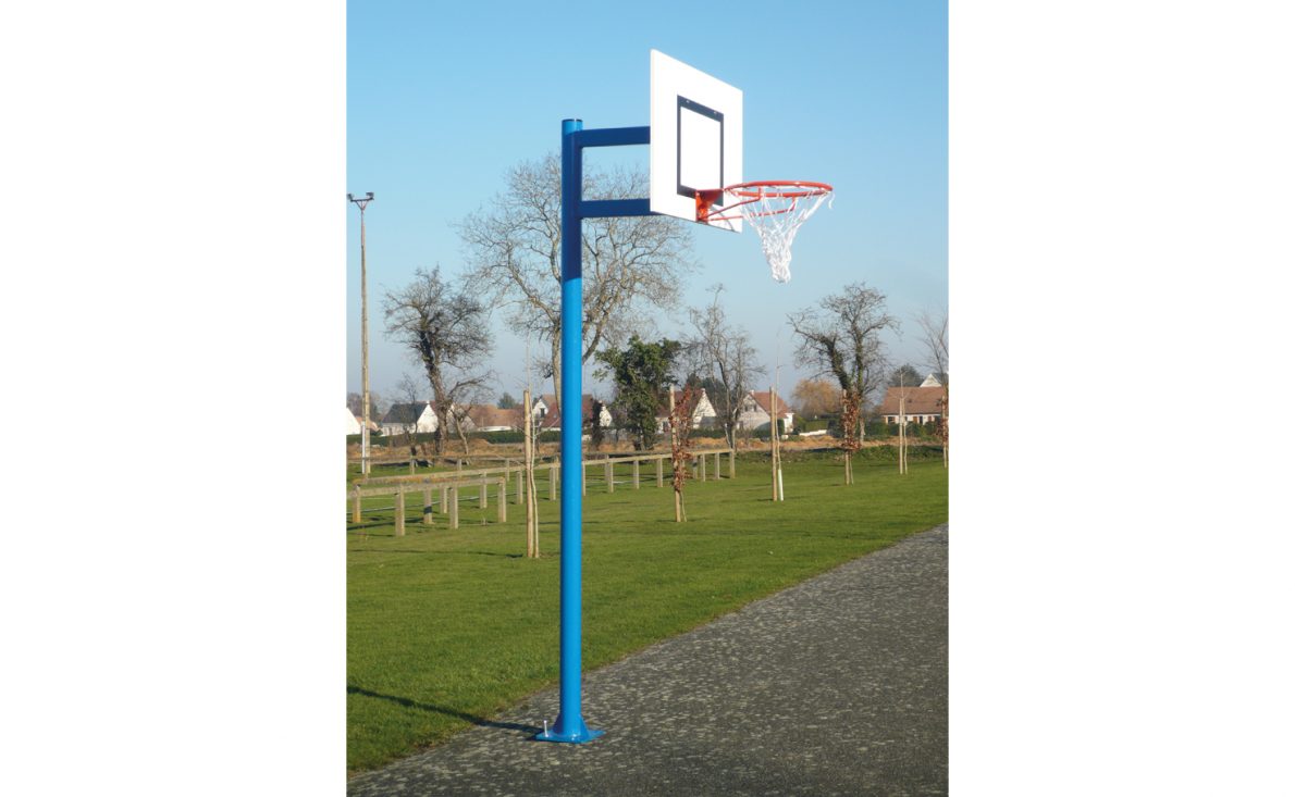 Le bord supérieur du panier doit être exactement à 3,05 mètres du sol du terrain de jeu. Le panier a un diamètre de 45 centimètres et est monté sur un dispositif de support à exactement 15 centimètres du panneau de terrain. Le panneau de jeu mesure 1,80 x 1,05 mètre avec un rectangle de 45 cm x 59 cm comme surface cible. La hauteur du.