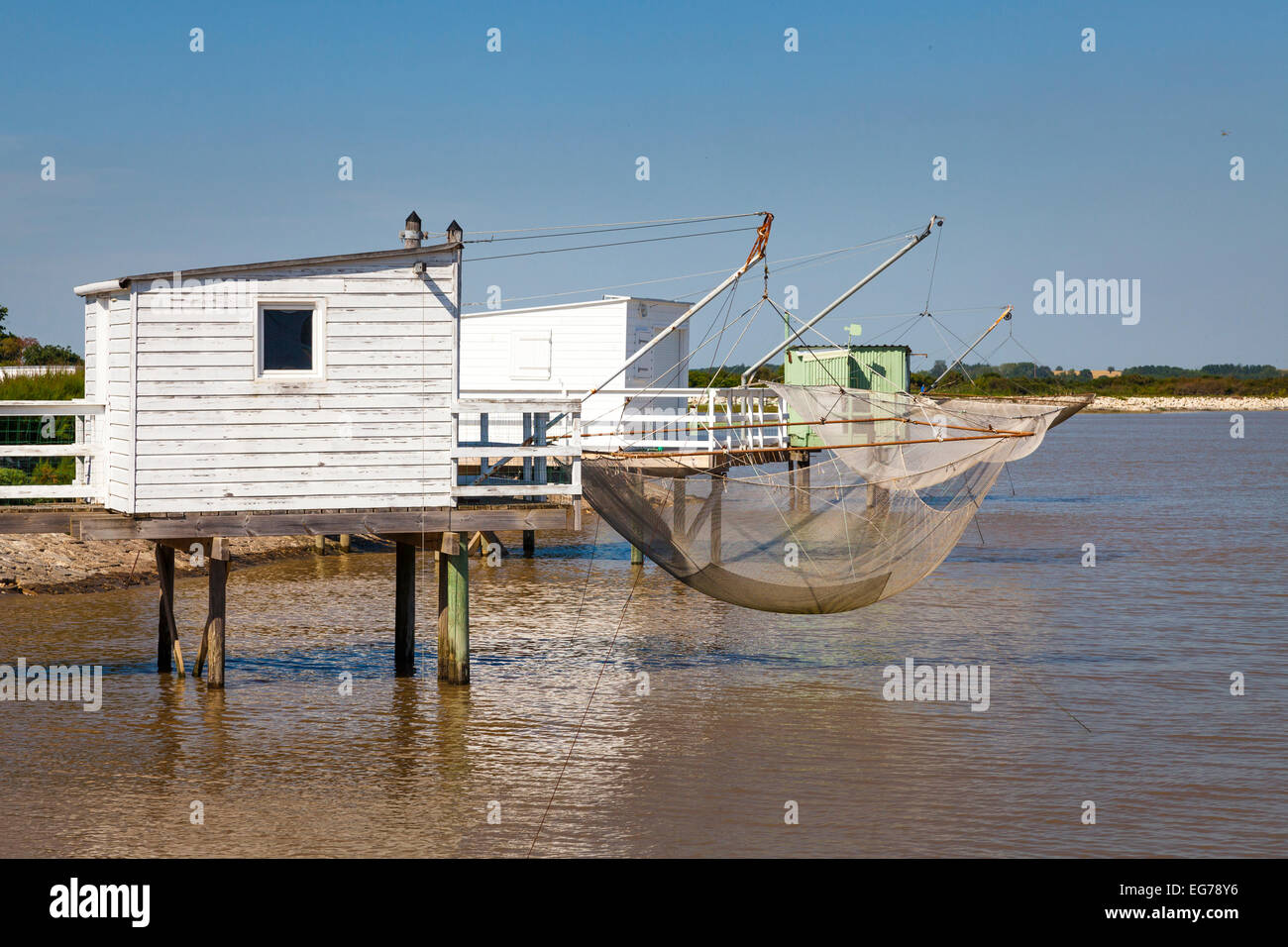 Cabanes de pêcheurs traditionnels carrelets sur pilotis avec filets à MescherssurGironde Photo