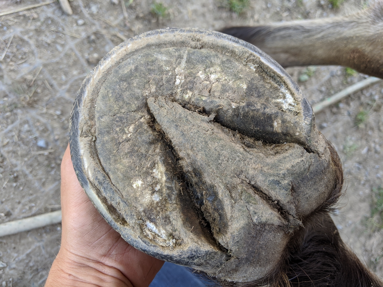 aussi appelée la maladie de l'âne. Il s'agit d'une maladie qui s'attaque à la sole du sabot, qui bien blanche normalement, devient terne ou grisâtre. Cette maladie est souvent due à des litières mal entretenues. Le signe caractéristique est la forte odeur nauséabonde que dégage le sabot lorsque vous le nettoyez.