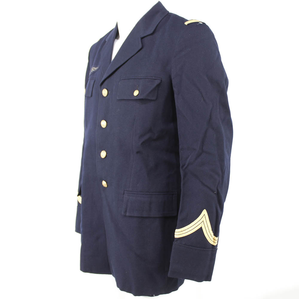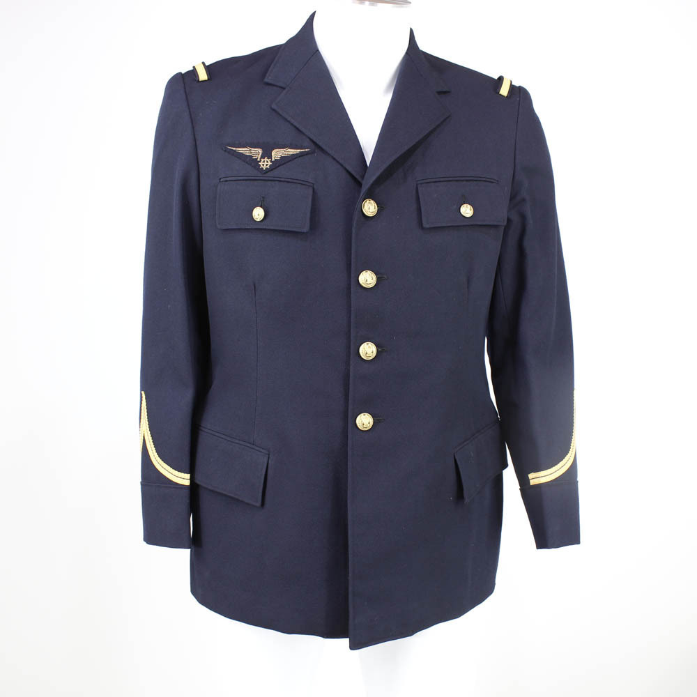 Veste de cérémonie de l'Armée de l'Air. Brevet de poitrine. Galons de bras pouvant être de couleur or ou argent et avec différents grades (pas de choix possible) Attentes sur épaules. Fermeture par boutons. Boutons bombé de l'armée de l'air en laiton. 4 poches extérieur.
